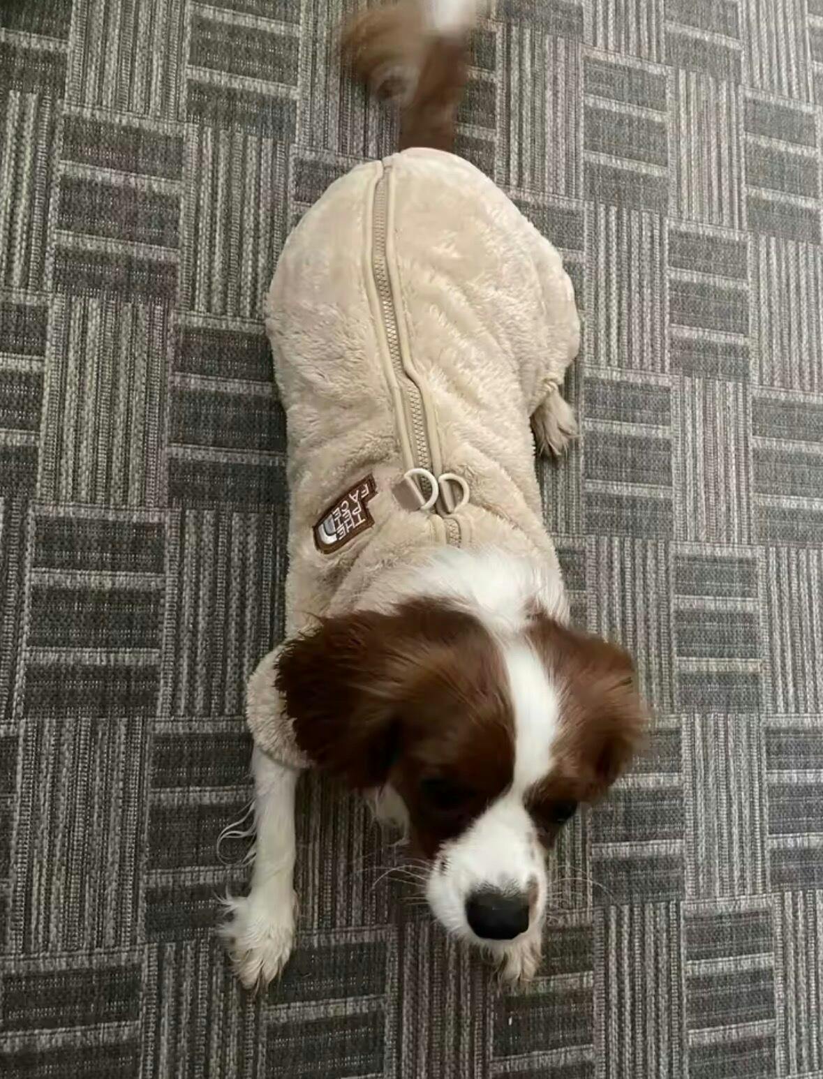 Good jumpsuit, ordered XXL for a 8 kg cocker, fits well, doesn't squeeze anywhere, fits perfectly.